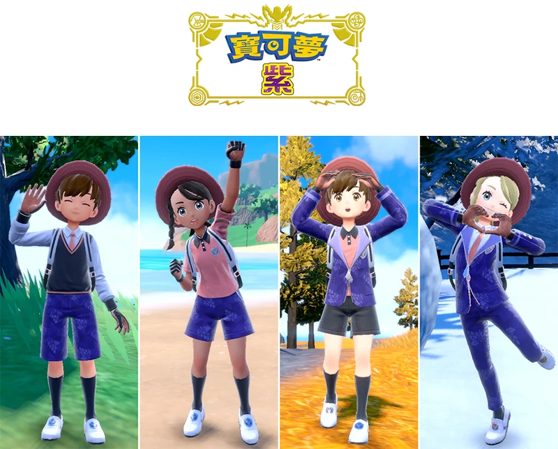 「新制服套裝」包含了春、夏、秋、冬四季的制服,不僅可以在DLC《零之秘寶》中使用,也可以在《寶可夢 朱/紫》中使用,不過制服會依據《寶可夢 朱》、《寶可夢 紫》版本而有所不同!