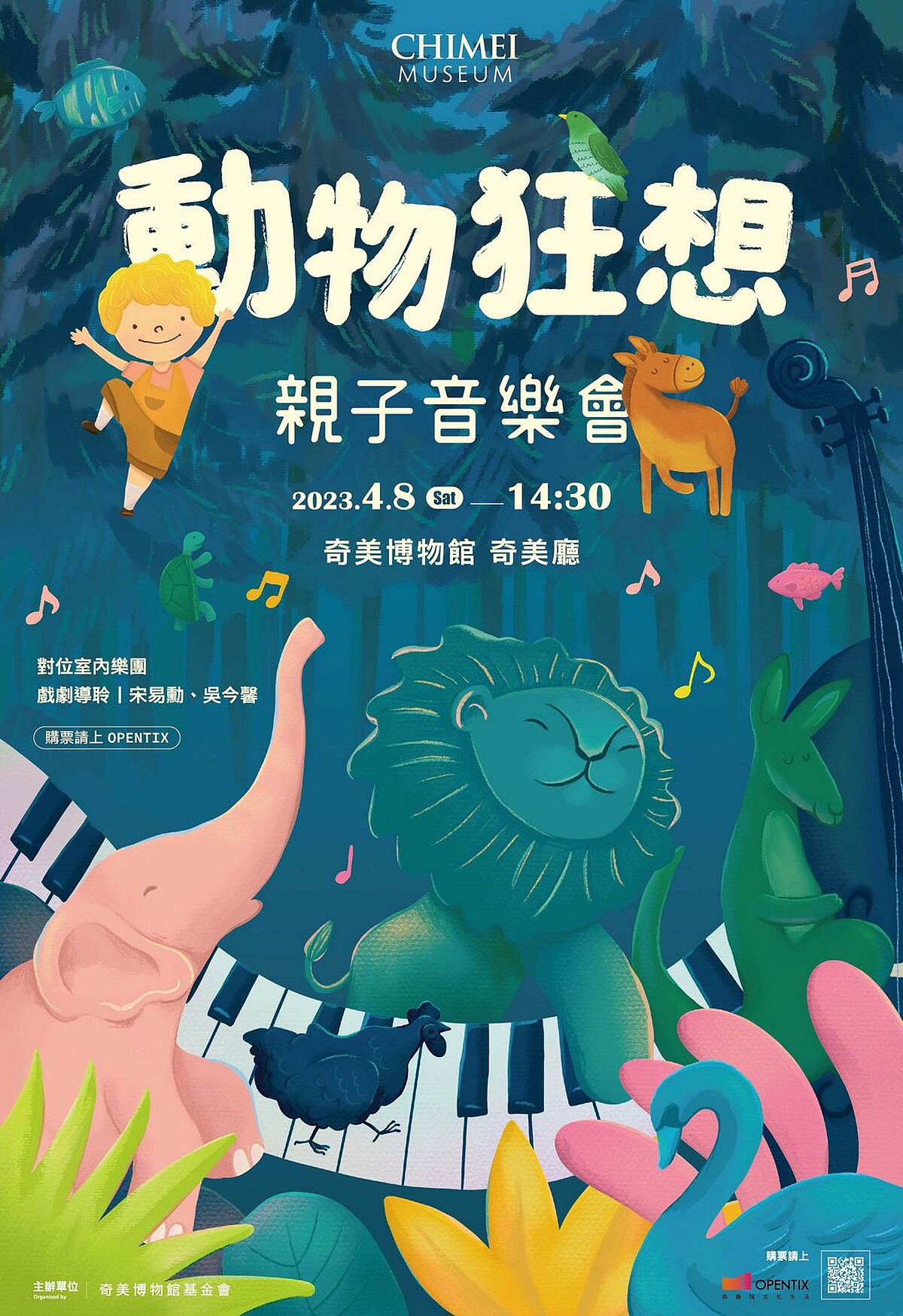 動物歡樂派對來了!奇美博物館首度推出親子音樂會「動物狂想」,邀請小朋友一起打開耳朵聽聽各種動物的叫聲,跟著獅子大遊行、漫遊水族館、造訪花園王國,啟發無限的想像力!而本次母親節音樂會主打熱情奔放的拉丁風情,展現媽媽充滿個性的自信風采,期待透過多元主題的音樂會,讓古典樂親近每個家庭,更為家人打造一個共同情感的難忘回憶。