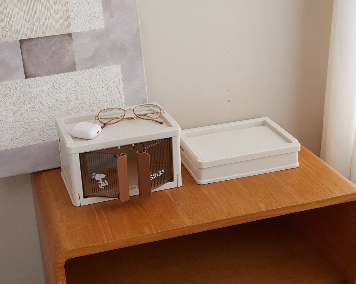 桌面收納神器,讓大家可以隨手收納桌面小物,而上蓋邊緣深凹槽設計方便放置手機,前側雙門+頂部開蓋雙開設計方便取用。此外,還可可折疊且自由疊加,讓桌面整潔不凌亂!