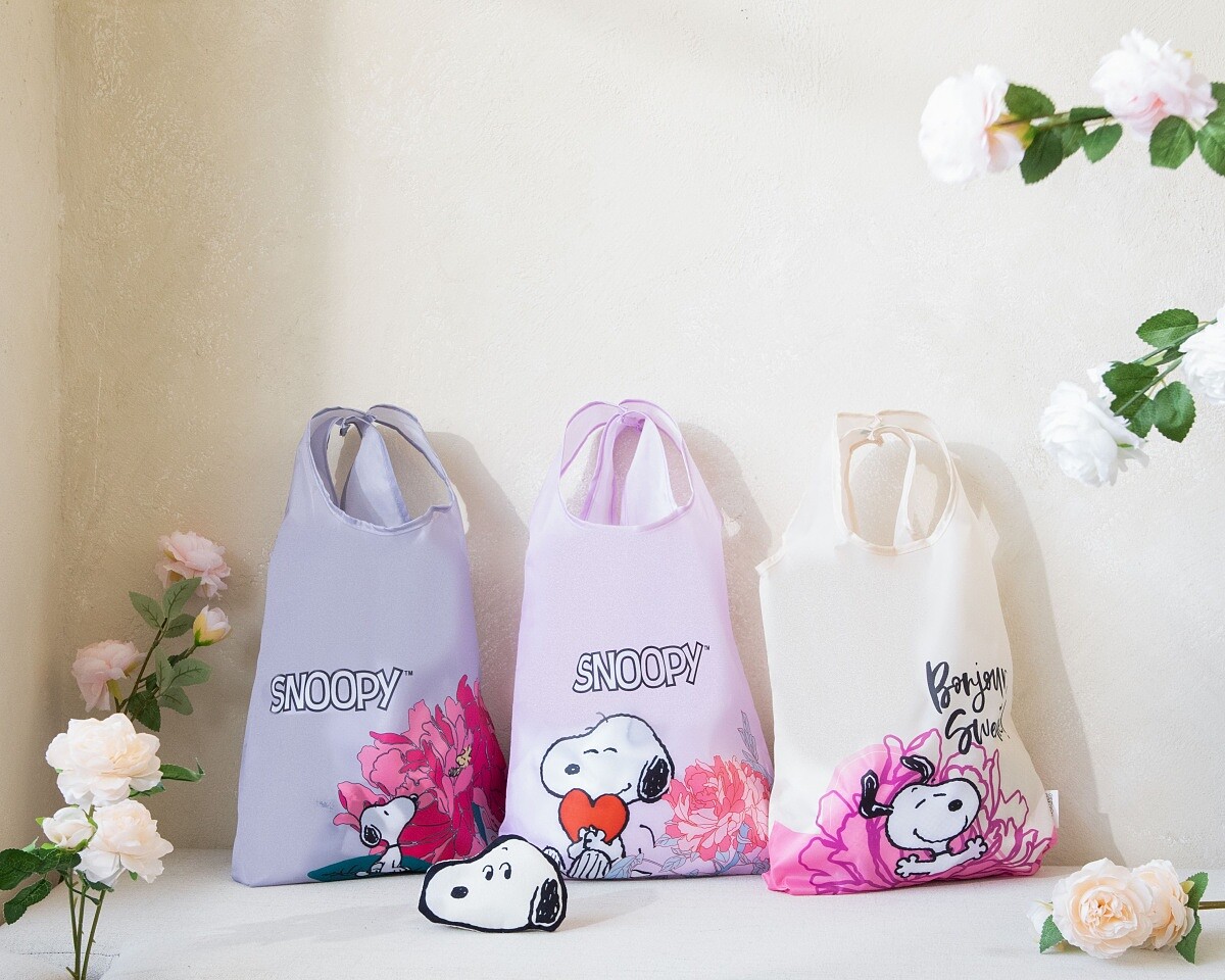 SNOOPY摺疊購物袋共有3款式不同樣式(隨機不挑款),其設計靈感源自於國立故宮博物院「清朗世寧畫瓶花釉」作品中的牡丹。牡丹象徵著高貴、典雅的品質,此系列購物袋以SNOOPY和故宮牡丹的精巧結合,將藝術元素融入生活中,讓購物袋不僅僅是日常物品,更成為追求美感和環保概念生活方式的體現。消費滿額只要加購價8元就能輕鬆帶回家,真的必收啊!