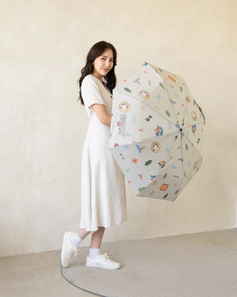 晴雨兩用的自動傘,具有抗UV塗層,阻擋夏日紫外線。傘柄上還配有可愛的SNOOPY造型小徽章,真的是太可愛啦!