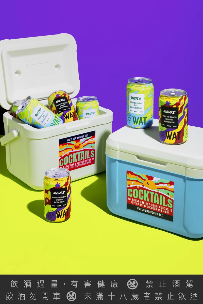 WAT與黑松沙士、黑松汽水聯名系列,「百香青青沙士氣泡雞尾酒」及「古早味冰冰汽水氣泡雞尾酒」,每罐售價$59。5/31於全台全家便利商店搶先上架,3件79折; 6/30於全聯上市;7/7則於家樂福、大潤發上市,全台各地都能輕鬆入手,隨時隨地都能享受微醺。