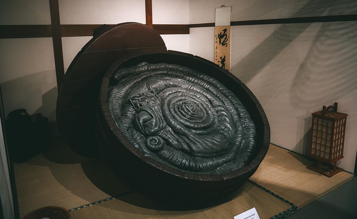 伊藤潤二老師最令人印象深刻的 《漩渦》 也將全球首次展出,以人體與木桶結合的的大型漩渦裝蛋鰵悚刻畫故事中秀一爸爸對漩渦的喪心病狂!
