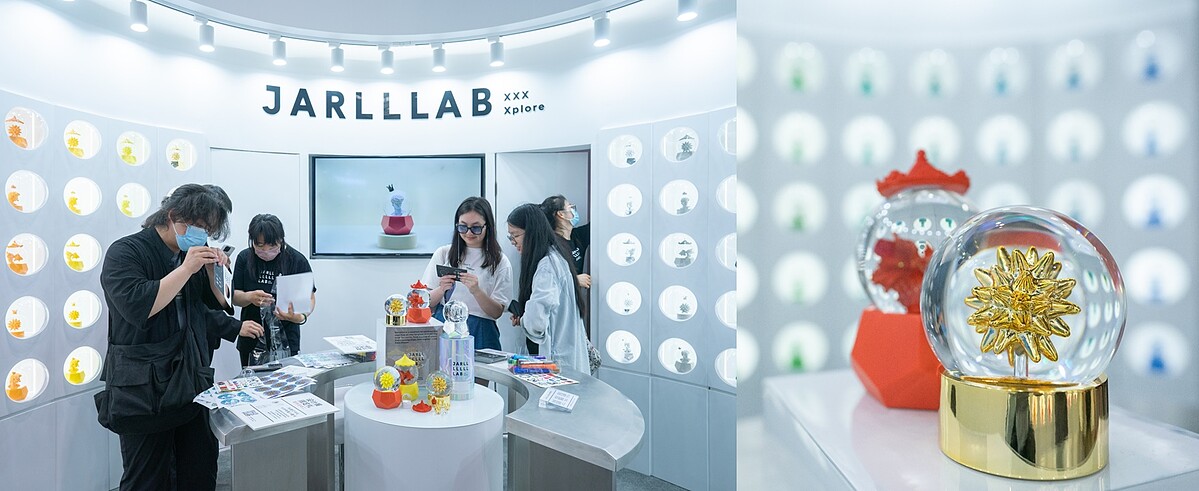JARLLLAB品牌一誕生就立刻加入2023上海設計展,展場現場特別還原十分有科技感的實驗室空間,以全白色系傳遞出化學元素的純淨感,擺在牆上鮮豔的水晶球,正是由未知元素“L”經過實驗“結構與純化”、“重組再創新”所製造出的創新作品,夠驚艷的想像力也讓JARLLLAB當天成為最受矚目品牌,觀展人潮不斷湧進櫃點,大家都想一探創意水晶球的魅力!