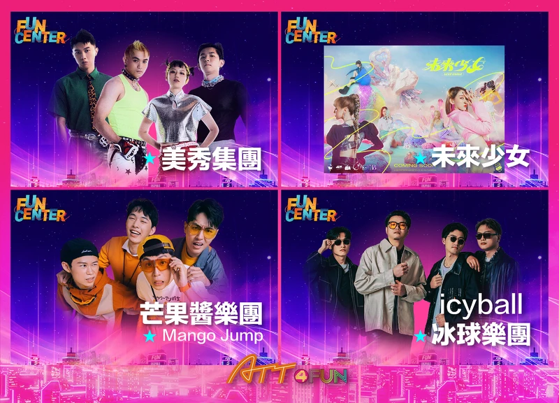 2023「ATT FUN式音樂節」由復古台味搖滾樂團「美秀集團」打頭陣,同時邀請到《大嘻哈時代》人氣選手馬克SAVAGE.M、FRαNKIE阿法、Gummy B,及DJ賴皮 MR.SKIN 帶來全台最大最狂KTV包廂「國語作業簿」、超夯女團選秀節目「未來少女」七色水晶更首度大集合!