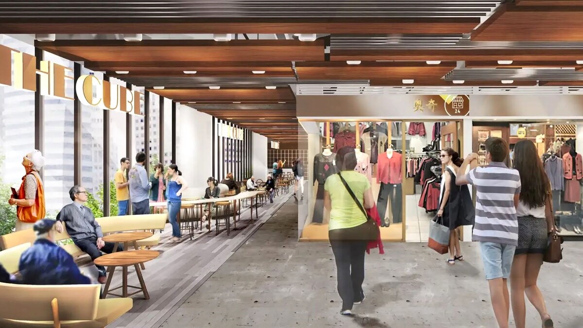 全新的南門市場建物達12層樓高,外型全由大面玻璃帷幕呈現,既能引入自然光線,又能塑造出俐落幾何風格。更具特色的還有「跳層陽台」能把市場內部活動延伸至大樓上,不只是一處開放式共餐場域,也能讓都市人看見久違的市場內部活動。
