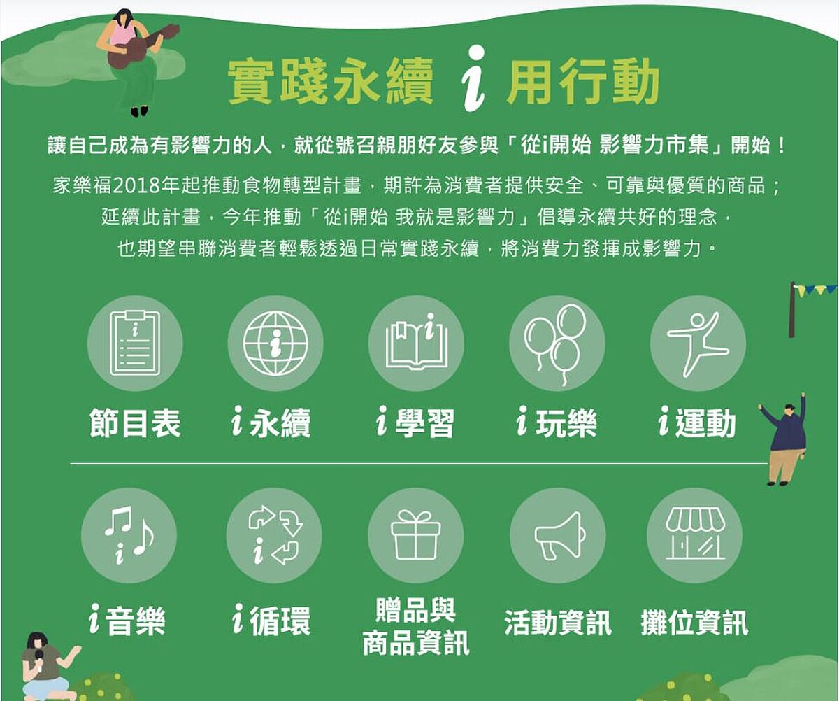 家樂福食物轉型計畫(AFF) 今年延續為從i開始我就是影響力,希望藉由串聯消費者的力量,一起推動永續共好的理念,邀請大家號召親朋好友參與「從i開始 影響力市集」!