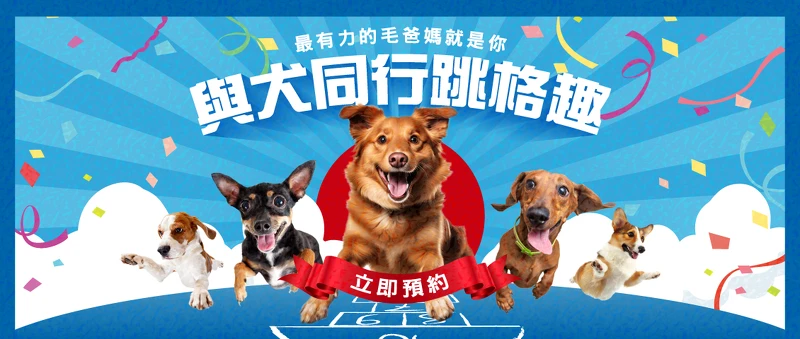 首場與犬同行跳格趣登場!與毛孩踏上時光之旅回到童年時代,一同進行跳格子趣味賽!千元毛孩大禮免費帶回家!立即預約參賽,每日限量60名!