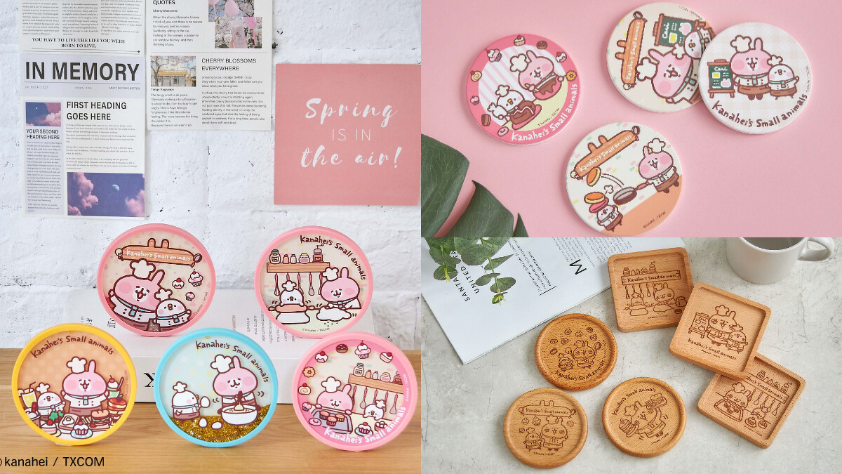 如果你是手搖控,外送杯上的小水珠常滴的滿桌都是嗎?小小廚師P助和粉紅兔兔戴上廚師帽的3款杯墊,讓你開心喝飲品之餘,桌上也不會總是溼答答。無論是文青風「木杯墊」、質感風「木陶瓷杯墊」,還是華麗風「流沙杯墊」,都超級實用和可愛,快點準備到《卡娜赫拉的小動物-小小廚師》快閃店挖掘更多可愛小物吧。