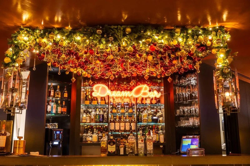 即日起至2024年2月25日,位於台北遠東香格里拉6樓的李白居酒廊,首度化身為期間限定夢幻酒吧-Dream Bar,將超過8,000顆繽紛聖誕球結合燈串,營造長達近3米的壯觀星光銀河,酒吧中央的霓虹吧台也很亮眼吸睛。由廚藝與調酒師團隊共同設計節慶菜單,從聖誕小食、豪華主菜到精緻甜點,如聖誕火雞肉卷、起司焗波士頓龍蝦、聖誕老公公的驚喜甜點等,搭配多款以經典爵士樂發想的聖誕特調,美味美型又好拍,將是台北熱門歲末聚點。