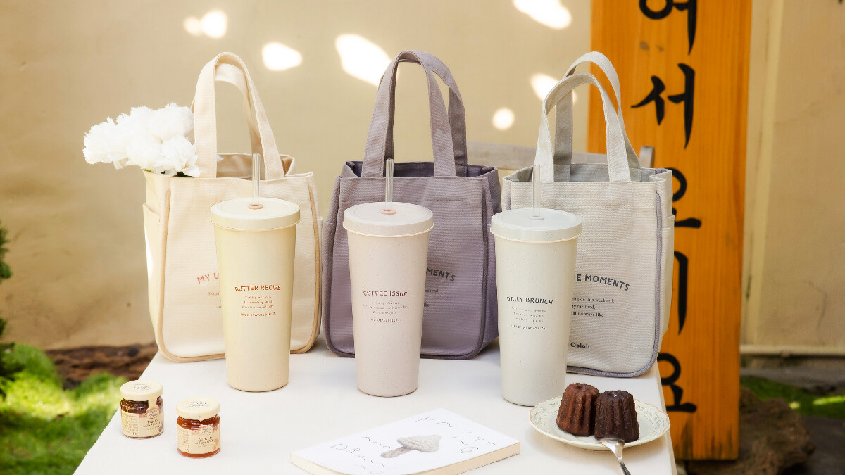 除了質感滿分的質感環保杯外,還有⼩時光美好假期提袋,內附PP底版設計,放東西不再東倒西歪,多口袋設計出門購物方便歸納分類物品,放鑰匙、錢包和手機剛剛好,袋身邊緣還設計成吐司邊的樣式,模樣可愛。