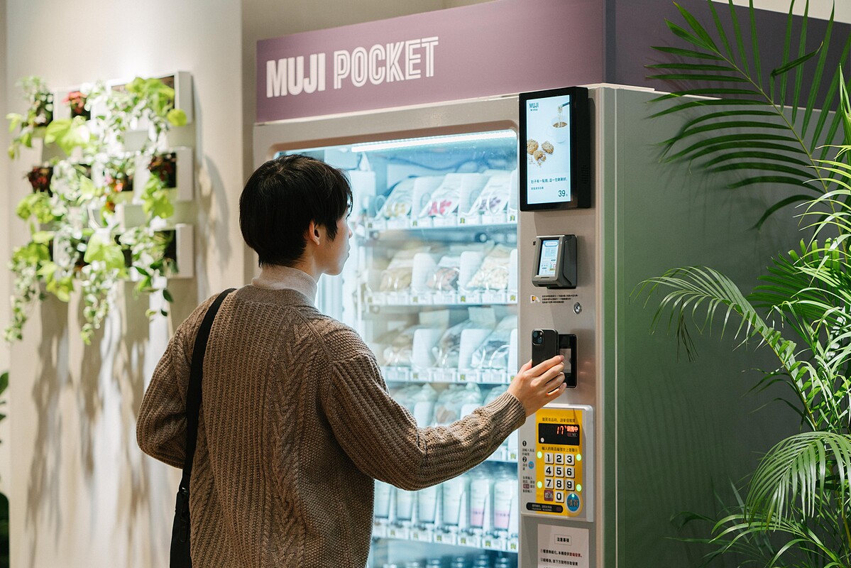 大立旗艦店除了設有免費飲水機,也引進「MUJI POCKET」自動販賣機服務,讓顧客在此購物時,可以更快速方便地補充水份及小包裝的點心零食。