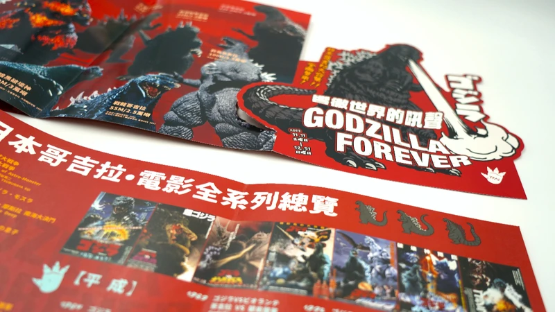 除此之外,國家影視聽中心特製日本哥吉拉的合輯摺頁冊,不只收納「昭和」、「平成」、「新世紀」三個指標世代的電影全系列總覽,透過一張張海報訴說特攝電影的魅力,更將歷代日本哥吉拉做成演化圖鑑,詳盡標註名稱、身高體重與出現的影片年份。