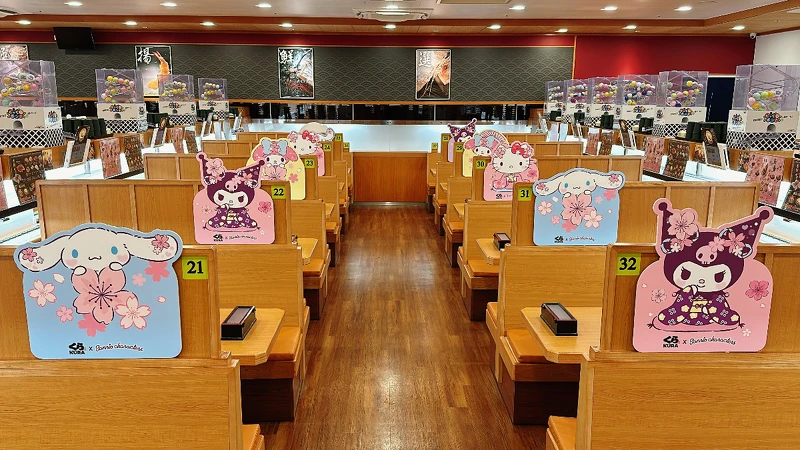 除此之外,藏壽司還將基隆中正信三店、台北館前店、台中惠文路店、高雄岡山店共4間門市打造成最萌打卡景點,包括收銀檯、等候區到用餐區都看得到三麗鷗好友們的蹤跡,快來跟三麗鷗人氣明星大耳狗、酷洛米、美樂蒂、Hello Kitty一起面對面吃壽司!