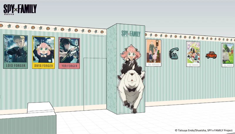 除此之外,這次的快閃店還準備了3大打卡點,走近快閃店就會馬上看到「安妮亞扭蛋區」,安妮亞拿著花生勾著企鵝的模樣超可愛!往店內走會看到洛伊德、安妮亞、約兒、彭德隱藏真實身份組成的「佛傑一家」,最後則是安妮亞騎著彭德彷彿快要衝出牆面的「安妮亞&彭德」。
