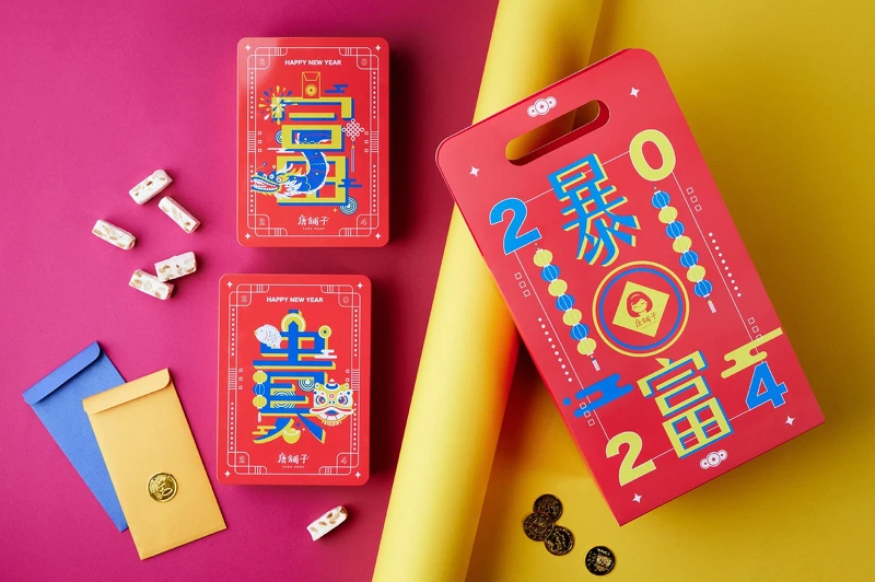 誠品線上「甲辰年節食品展」,與英國米其林二星主廚合作出品「唐舖子」喜氣推出「2024新春暴富禮盒」,結合傳統工藝的牛軋糖,搭配富貴暴富設計,榮登新春最吸睛的年節禮盒,送禮心意更加倍。