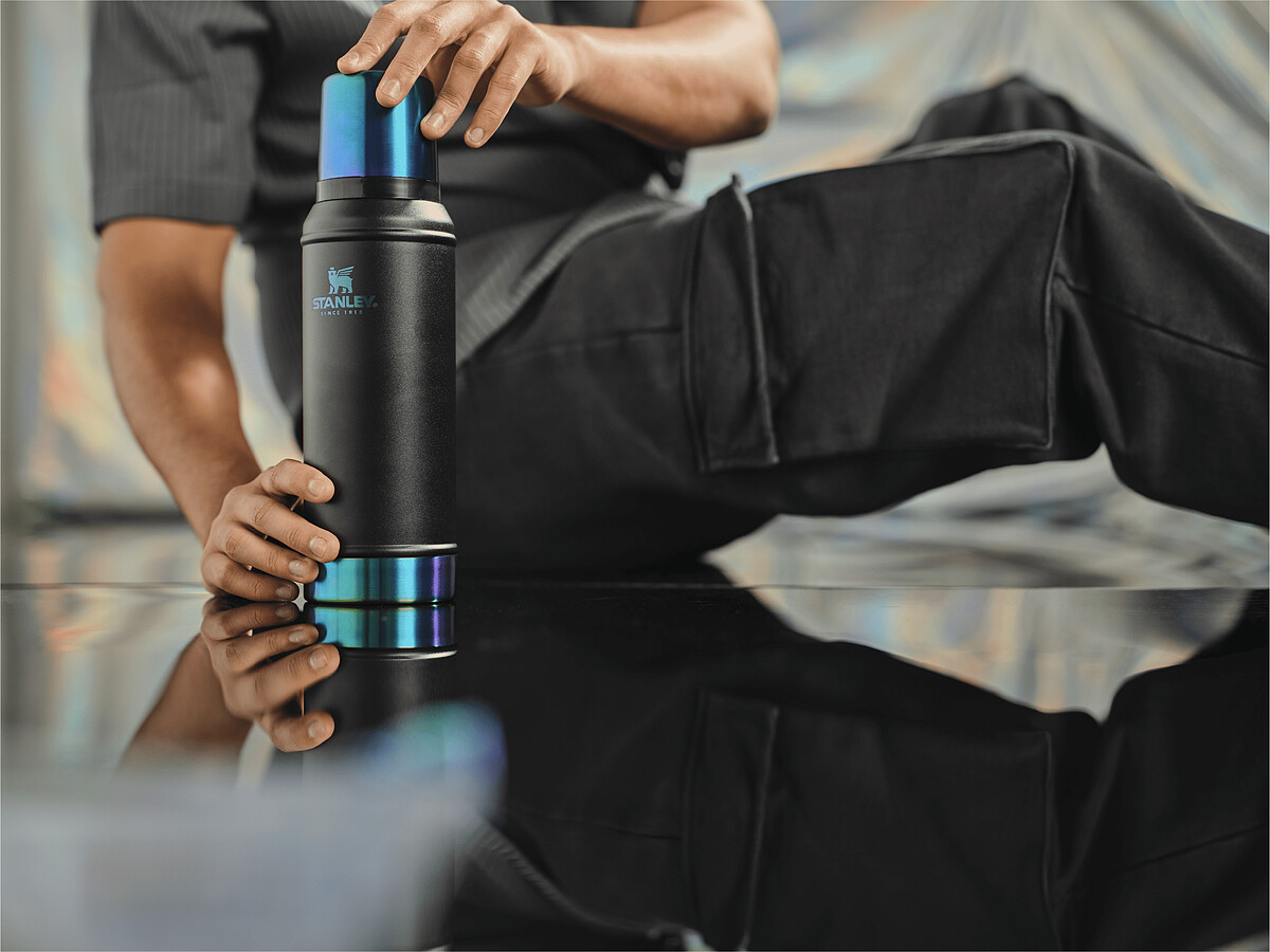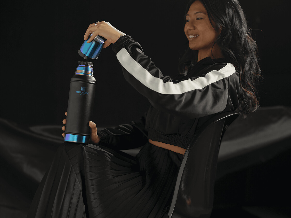 擁有百年歷史的真空保溫瓶,是STANLEY最經典的單品。除了雙層不鏽鋼真空結構延長保溫和保冷時間至26小時之久,消光黑塗層手感溫潤好拿,還在瓶蓋和LOGO點綴全新的閃耀烤漆塗裝,讓您用喝水這件日常小事,低調展示您的獨特品味。