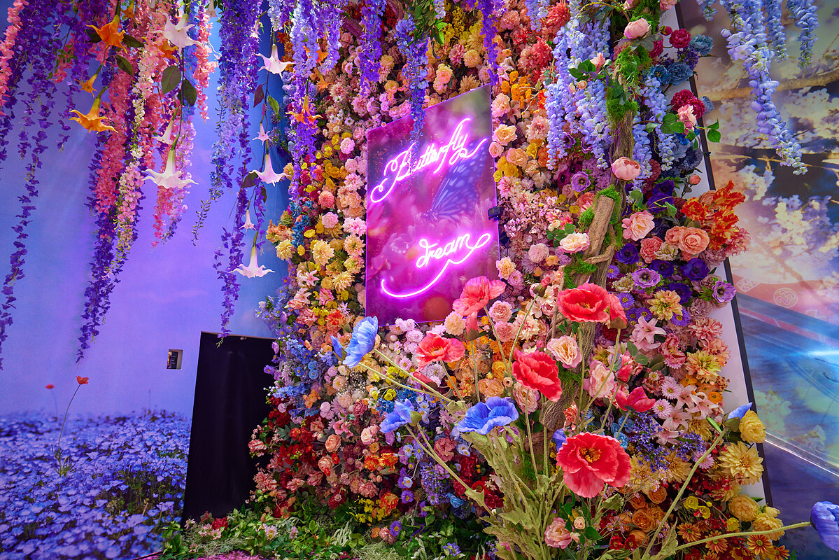 ●數位藝術投影牆:透過5種光影特效與500張花朵照片的隨機特效結合,打造出2,500種不同沉浸風格,每次按下快門都是不同的畫面,這種一次性地體驗反映自然界的短暫和人類情感的變幻,讓參觀者可以透過沉浸式的體驗,感受到情感上的連接!
