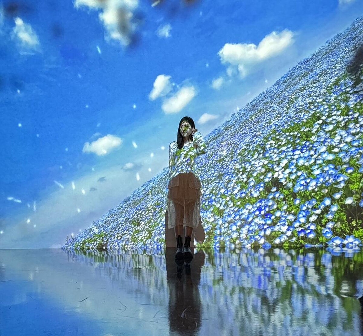 ●沉浸式攝影作品展: 沉浸式攝影展由12幅大型攝影作品,搭配近5米高、近千朵花牆,並將蜷川實花作品結合霓虹燈所組成!以「情感的調色盤」為主題,每朵花的照片和效果都象徵著特定的情感或狀態;在明亮的光線中出現的花代表著希望和新的開始,飄舞在空中的花象徵自由和解放,被強風吹拂的花瓣則表現出逆境和變化的應對,從中心展開的花象徵內在的成長和綻放,而從水面浮現的花則代表內省或平靜。