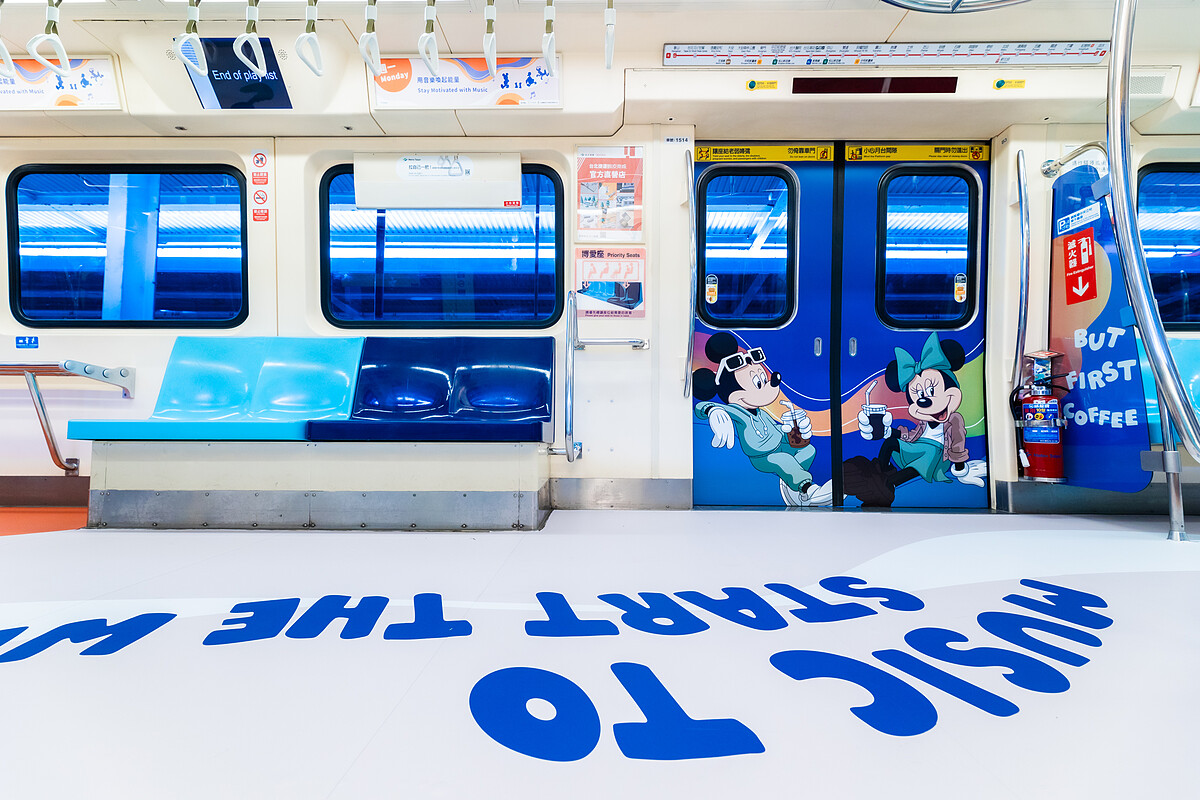 台北捷運公司這次與合迪士尼合作,攜手打造「Keep It Real」都會潮流風格打造主題彩繪列車,米奇與好朋友共同陪伴大台北地區的通勤族們一起上下班,列車設計可看到布魯托、站上DJ台的唐老鴨和奇奇與蒂蒂,一整天的辛勞瞬間跑光光。