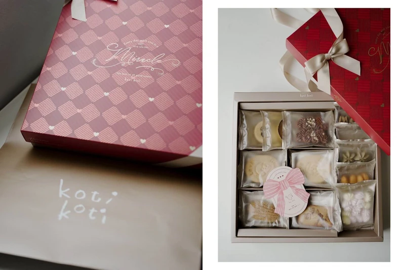 正在挑選喜餅的人,又多了可愛新選擇!koti koti全新「邱比特門市」7月初在中山商圈開幕,並於即日起開放平日限定預約優惠。這次,koti koti特別打造了充滿愛心與紅色緞帶的溫馨空間,靈感源自月老綁紅線,以及整面紅粉牆面的愛神邱比特元素。如咖啡廳般的空間,融合了可愛風格與溫馨木質,讓每個角落都充滿愛與浪漫的氛圍。更令人驚喜的是,現場還有多款與日本人氣插畫家Totoganashi合作的手繪禮盒,適合作為喜餅、彌月禮或企業送禮。