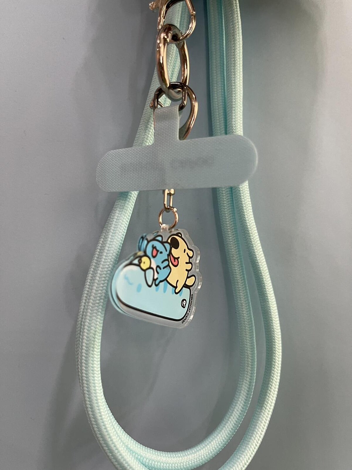 能夠解放你雙手的超實用好物就在這裡!靈活掛法讓君挑選,無論是掛脖還是斜背都適合,內含含1墊片+隨機1掛繩+隨機1壓克力吊飾,掛繩共2色、吊飾共4款,採隨機出貨,加購價:$99/組。