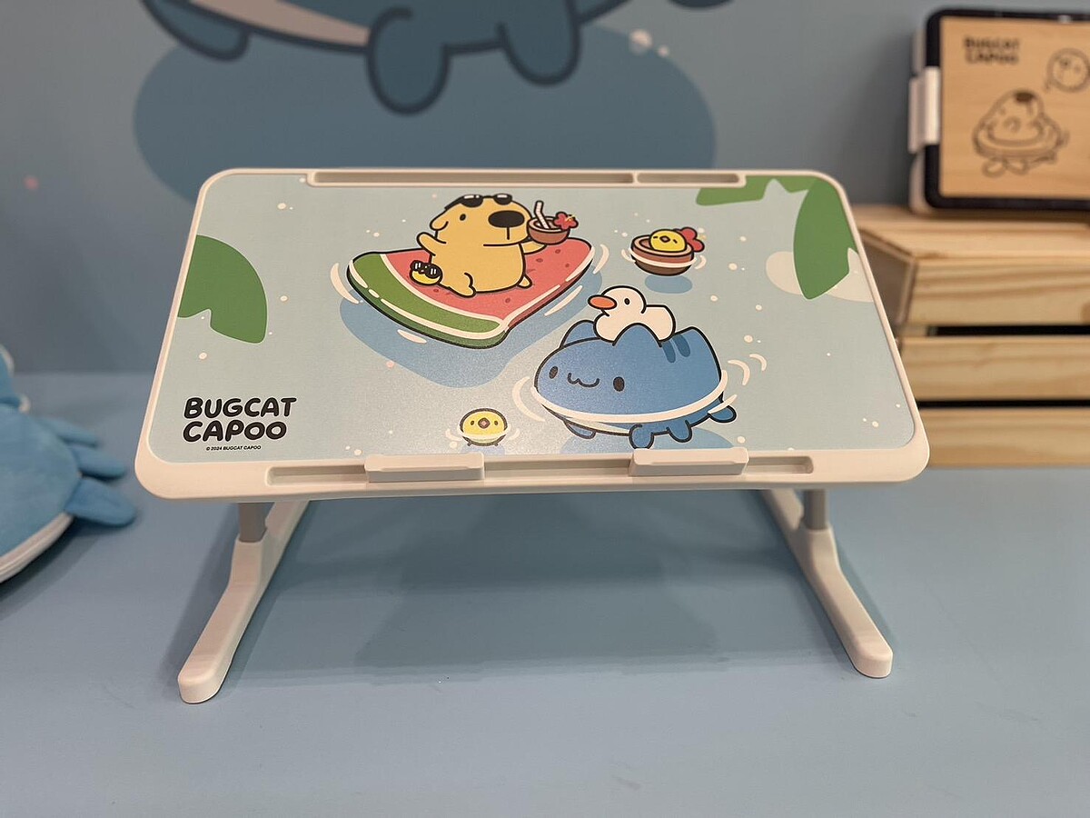 想要躺在床上工作或是讀書嗎?貓貓蟲咖波聽到你的心聲了,床上多功能懶人桌,有5段高度升降,角度自由調節,卡槽附防滑檔條,可放書、平板、手機,而且不需要組裝,輕鬆打開來即可使用,快速摺疊收納不占位,加購價:$699/個。