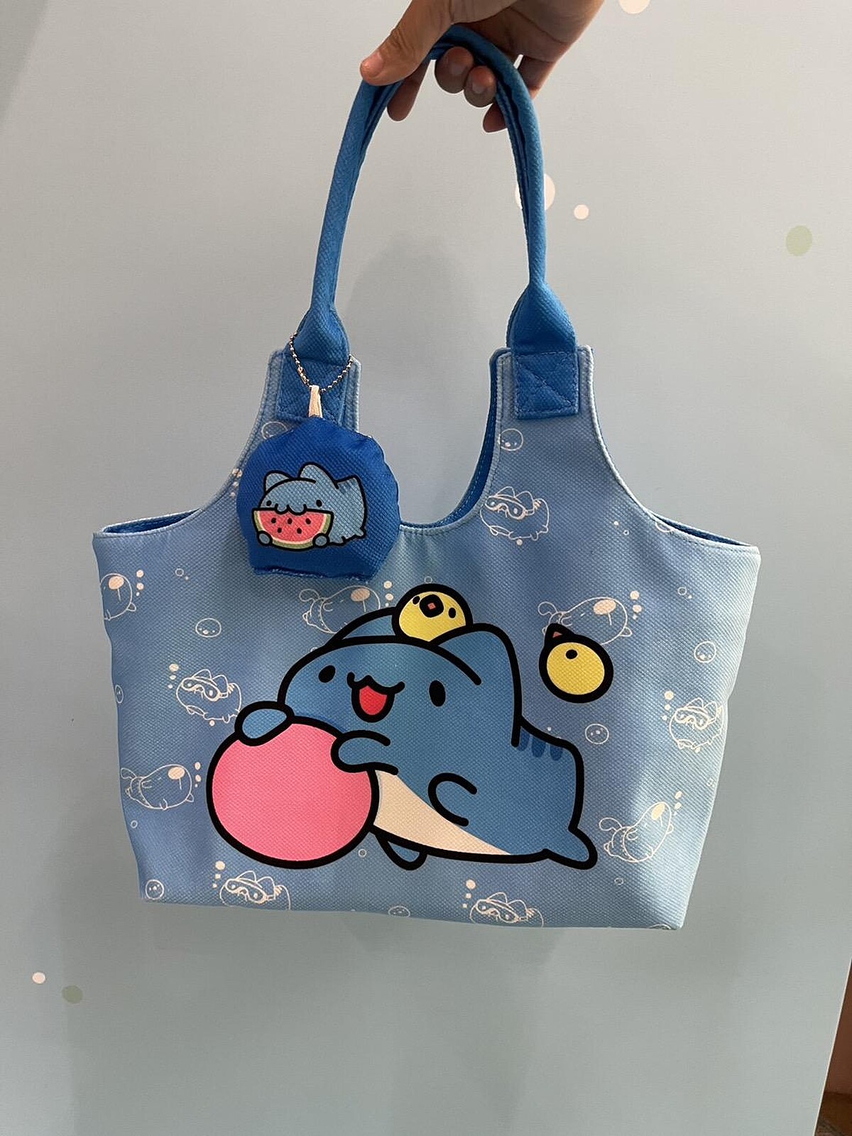 棉布材質輕巧舒適,可當作手提、肩背、腋下包,還有咖波紓壓吊飾,環保愛地球少不了它,加購價:$399/個。