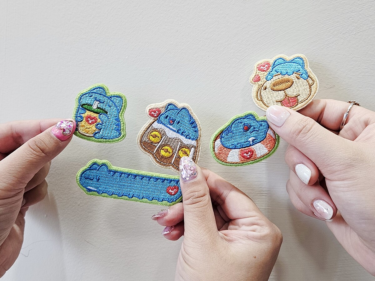 共有5款超可愛的刺繡別針,分別是咖波喝著手搖飲、坐在泳圈上玩水消暑的咖波、咖波與他的好朋友、長長身體的咖波,無論是搭配衣服、帽子、手提袋都超級適合。