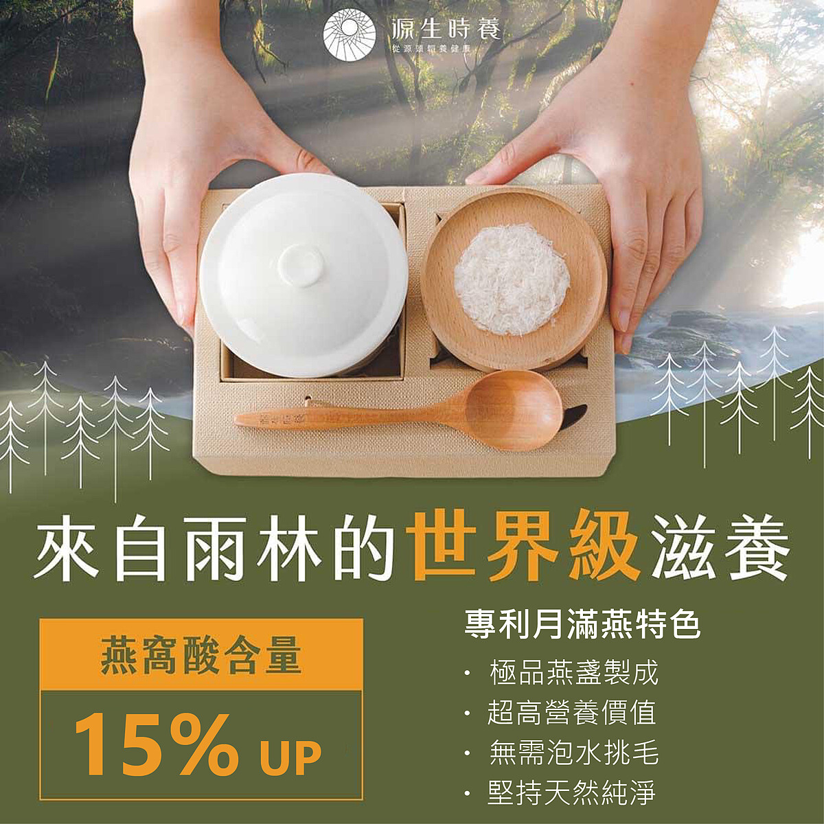 源生時養致力於提供最純淨、最高品質的燕窩,堅持人道採摘,採用嚴格的品質控管和現代化技術,確保每一片燕窩都滿載營養與愛心。讓每一位食用者都能感受到來自熱帶雨林的至臻祝福,無論是銀髮族、孕婦或愛美的女性,皆可享受這份天然滋養。