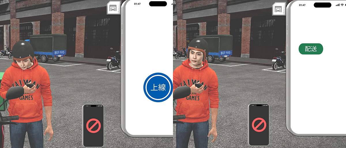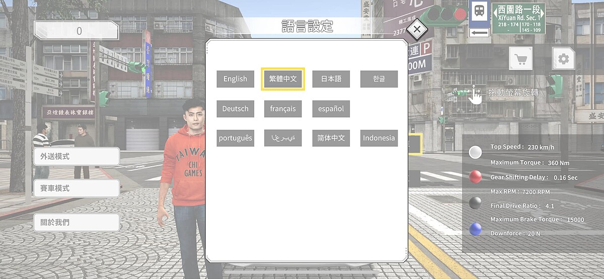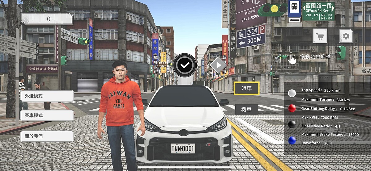 玩法很簡單,「台灣駕駛-賽車競速X外送員模擬」一開始選擇語言後,還可以「汽車」、「機車」二選一當你的代步工具,接著就可以開始接單外送,當然還不熟悉手感時,撞車的情形可是常常發生。