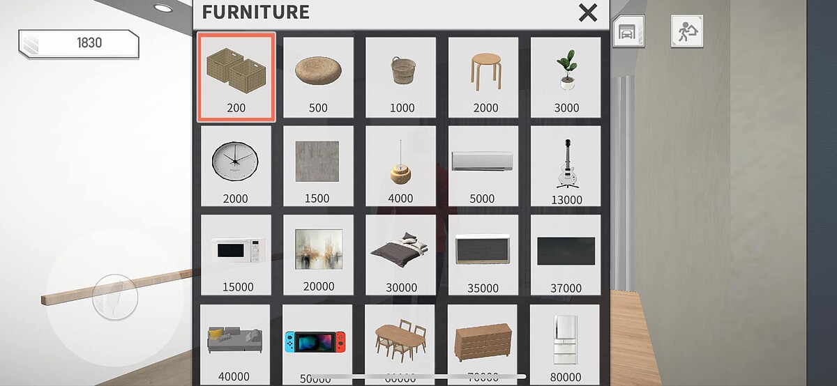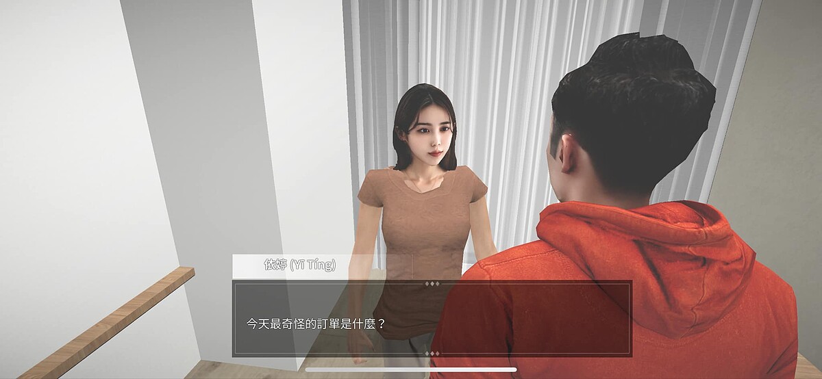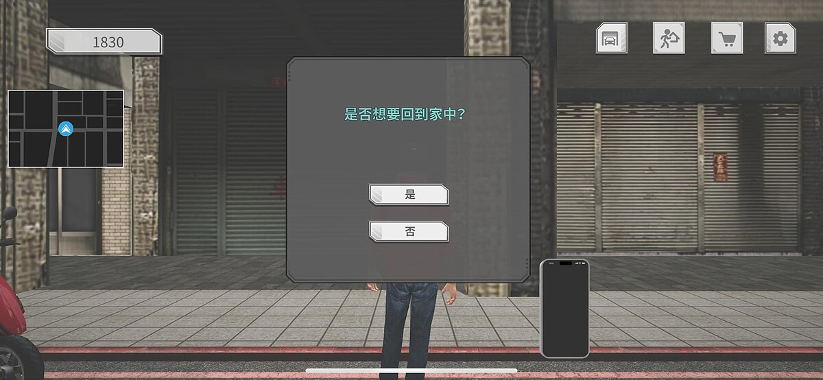 此外,右上角還能選擇回到家中,家裡會有女友等著你,也可以小小互動對話,以及用外送賺來的錢買傢俱佈置。
