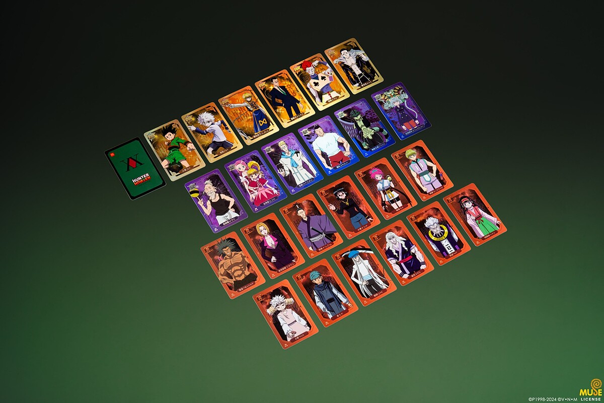 除了限定包裝,還有《獵人》角色盲卡包,收錄了《HUNTER×HUNTER獵人》全篇章24款各式經典人物外,更加碼1款極限量「隱藏版」,經典角色卡共有四種分級:「SSR獵人傳說角色卡」共6款,為金黃光澤卡面,璀璨耀眼;「SR獵人稀有角色卡」共6款,為閃銀質感卡面,晶亮吸睛;「R獵人珍藏角色卡」共12款,為銅面珠光卡面,重現獵人人氣經典角色;最終再加碼1款「SP夢幻隱藏鑽石黑卡」。