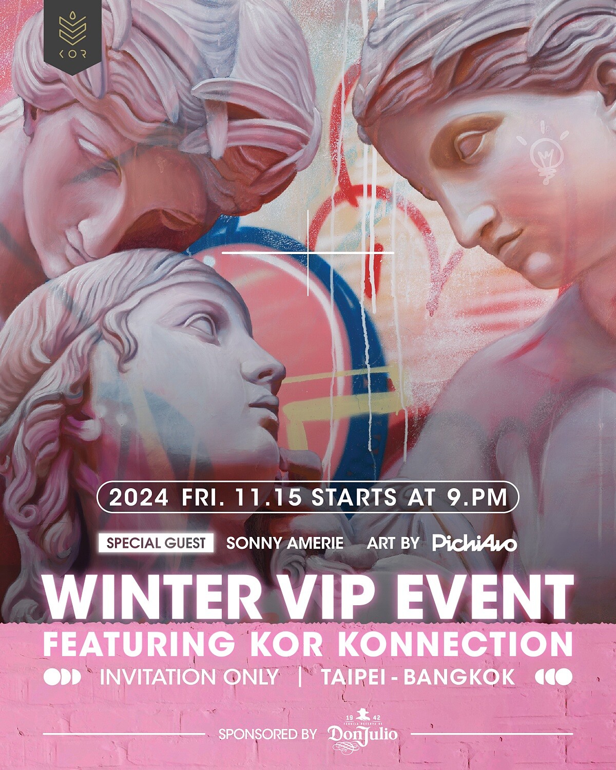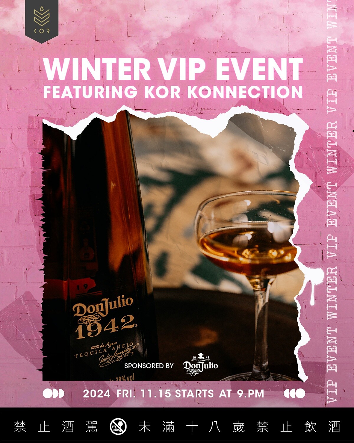 以世界級音響、國際級演出陣容和獨創調酒聞名,「KOR Taipei」不僅是台灣音樂與酒吧文化的標竿,更是不少明星與國際 DJ 慶功派對的首選場地。結合高端場域與創新酒單,KOR 將音樂、酒飲與藝術完美融合,帶來無與倫比的感官體驗。就連火星人布魯諾(Bruno Mars)演唱會結束後都要手刀直奔到「KOR Taipei」狂歡!