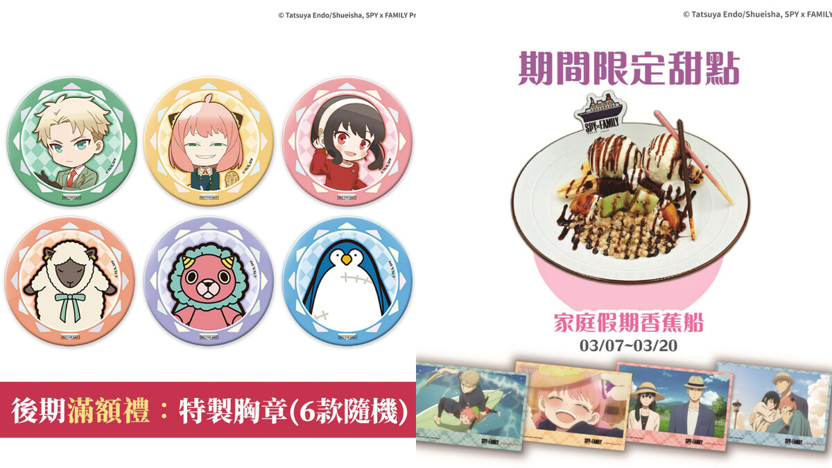 特色活動分為兩種階段,3/7~3/31店內當日單筆消費滿800元就可獲得A5圖卡1張,4/1~4/24店內當日單筆消費滿800元可獲得特製胸章1個,兩種階段同樣是6款隨機贈送,兩階段滿額禮數量有限送完為止,想收藏的諜迷們動作要快。