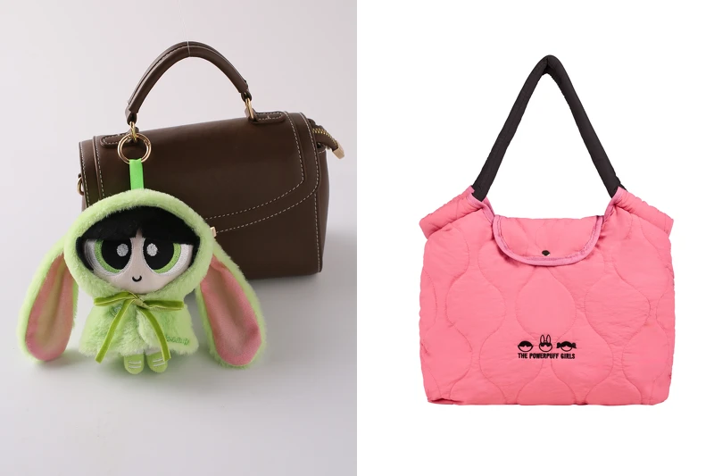 飛天小女警不只拯救世界,這回還要拯救你的上班穿搭。「兔耳絨毛吊飾」以包包掛飾熱潮為靈感,設計三款角色造型,搭配可拆式兔耳披肩,造型隨心變換,成為不少粉絲鎖定必收款。「大容量手提包」推出黑與粉兩色,絎縫設計與簡約角色圖樣,輕鬆駕馭辦公與休閒時刻;還有兼具功能與趣味的大頭摺疊購物袋,展開即是雙面圖案,不使用時可收納為可愛吊飾,讓花花、泡泡、毛毛與三位反派角色時時陪伴在側。