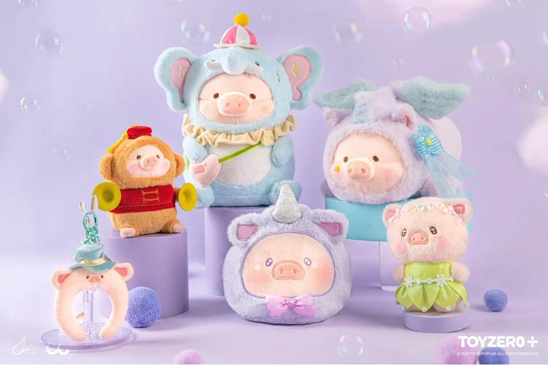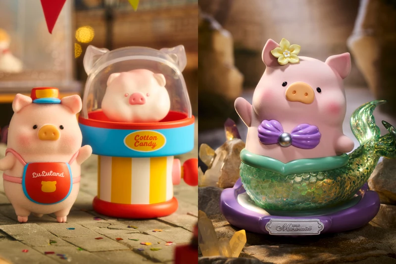 這次最大亮點之一就是同步推出的《繽紛樂園系列》盲盒新品,LuLu換上小丑、獨角獸、魔術師等樂園風角色,重現旋轉木馬、摩天輪、糖果攤等經典場景。10款設計包含8款常規與2款隱藏,每款都有獨特互動機關「夢幻木馬Lu」按壓即能搖擺、「甜蜜補給站Lu」可轉動糖球、還有能拼成小火車隊的「飛豬環遊Lu」與「遊園列車Lu」,療癒指數直接拉滿。這組盲盒主打「可玩、可擺、可互動」的設計理念,採用多材質工藝與細膩塗裝,讓每位養豬人彷彿擁有一整座隨身遊樂園,重拾童年快樂時光的入口票就藏在這些精巧小物裡。