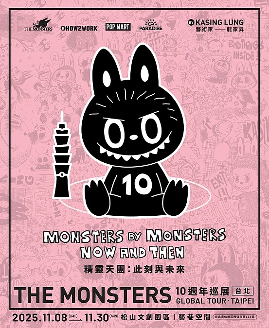 Labubu可愛入侵台北松菸!由香港藝術家龍家昇所創造的「精靈天團THE MONSTERS」,其核心角色Labubu拉布布因與POP MART(泡泡瑪特)合作,在盒玩公仔界掀起爆炸性熱潮,為慶祝這群北歐森林精靈邁入10週年里程碑,即日起至11/30在台北松山文創園區藝巷空間盛大舉行巡展!藉由5大亮點,帶領粉絲踏上奇幻藝術之旅。