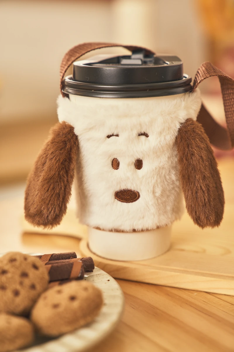 材質採溫暖的絨毛織法,手感柔軟又帶點溫度。杯套外型做出史努比與歐拉夫的耳朵、表情,戴上飲料杯後呈現出反差萌的可愛感。冬天握熱飲會更舒服,也能減少水杯外層的溼氣,喜歡帶杯套的人這款很值得收,因為造型和觸感太誘人。