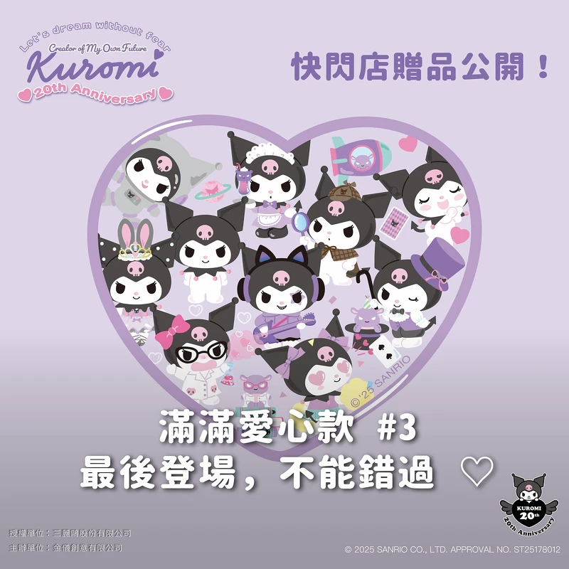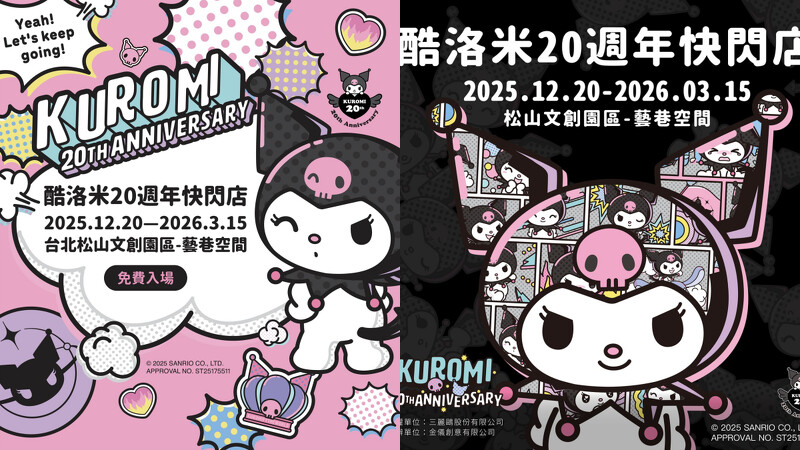 三麗鷗為慶祝人氣角色酷洛米誕生20週年,官方授權大型企劃「酷洛米20週年快閃店|台北站」於12/20在台北松山文創園區盛大開幕,活動一路持續至2026/3/15,且全程免費入場。消息一出,不少網友已紛紛在Threads上轉發訊息,直呼錢包要被這隻紫色小惡魔掏空了!