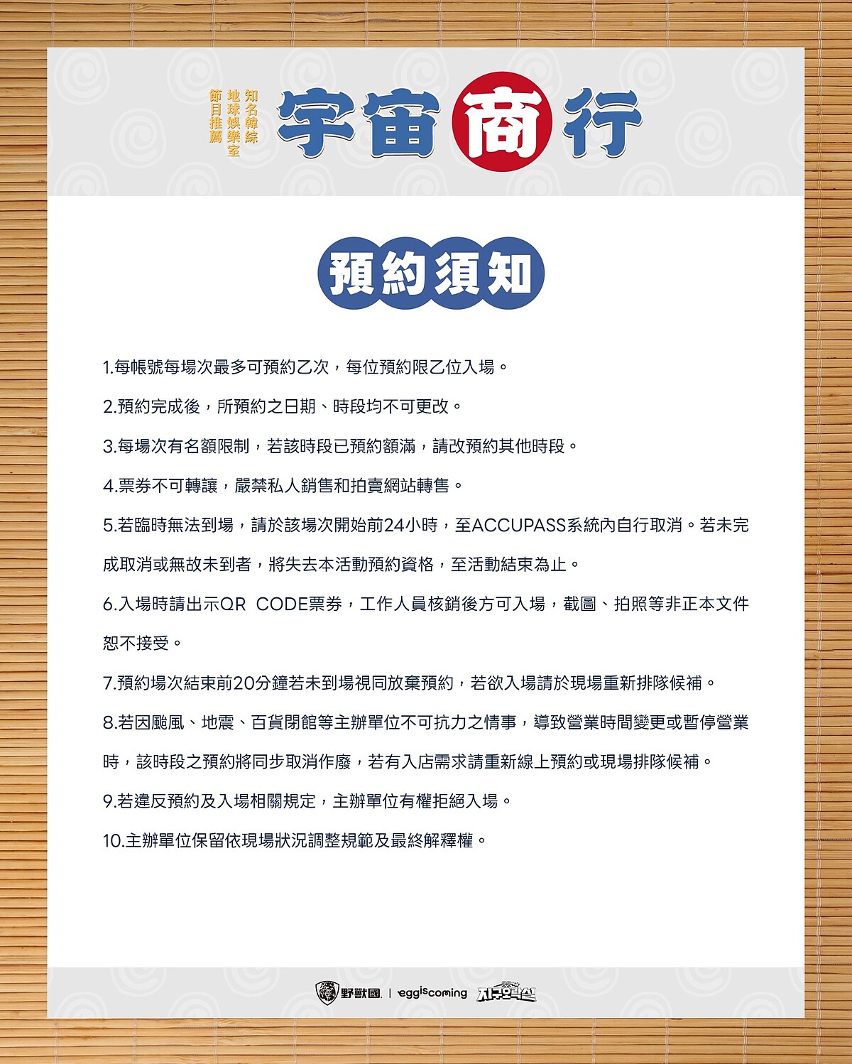 本次「宇宙商行」快閃店台北場與高雄場展現出不同的視覺巧思,台北場以「節目道具」為核心,完美還原了讓號稱MZ總統的李泳知都傻眼的「前男友吐司」,以及主持人們在阿布達比特輯中穿著的中東傳統服飾,甚至連節目中令人崩潰的環節「數位排毒」也搬到現場。