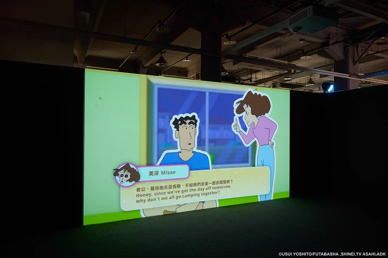 展覽以「野原家客廳」作為開場,透過專屬介紹影片揭開序幕。生活場景忠實還原,並特別邀請台灣官方配音員為小新、廣志與美冴獻聲,熟悉的聲音在空間中響起,彷彿推開家門就能聽見野原一家的日常對話,瞬間把觀眾帶回那個放學回家守著電視的年代,也正式展開這趟跨越時空的冒險旅程。