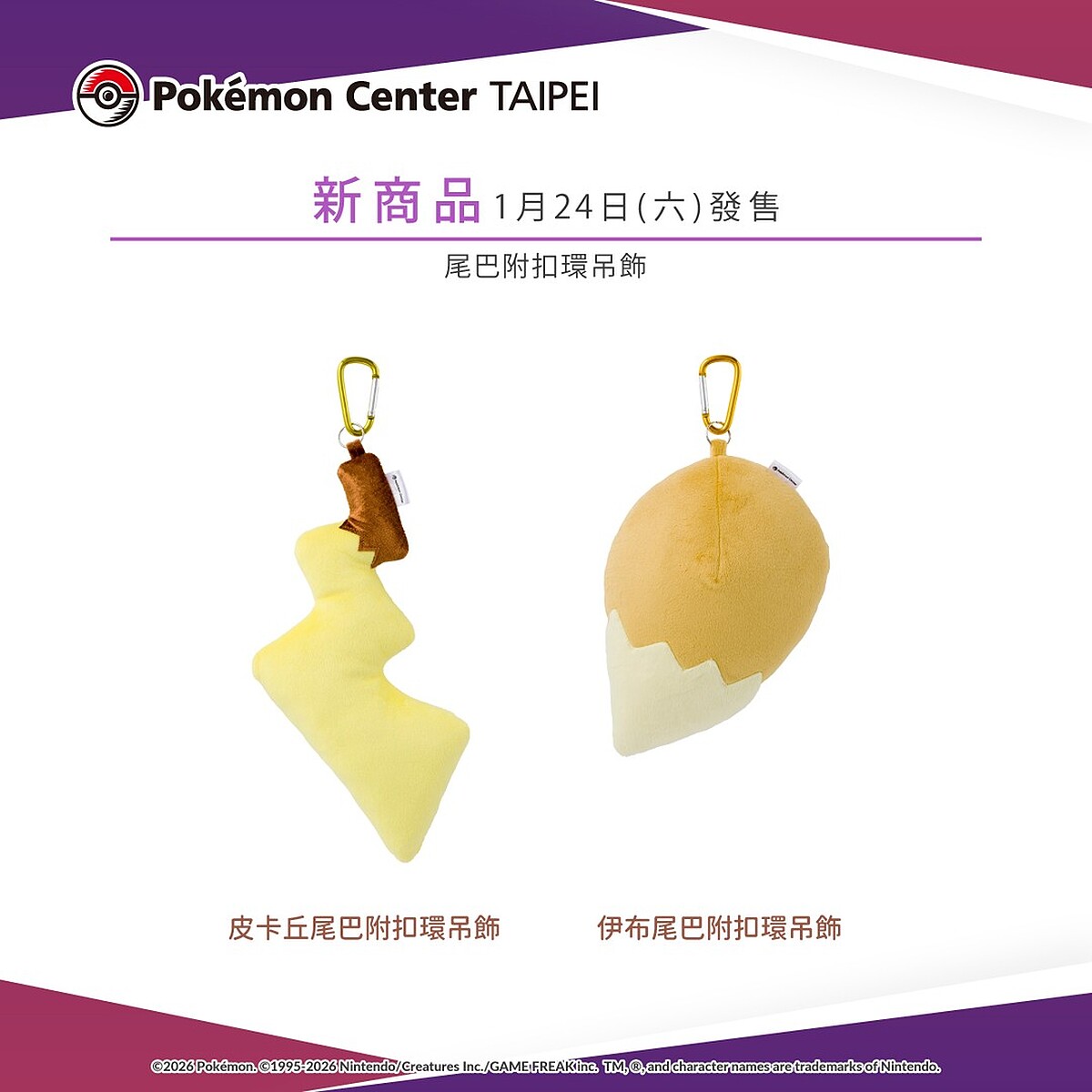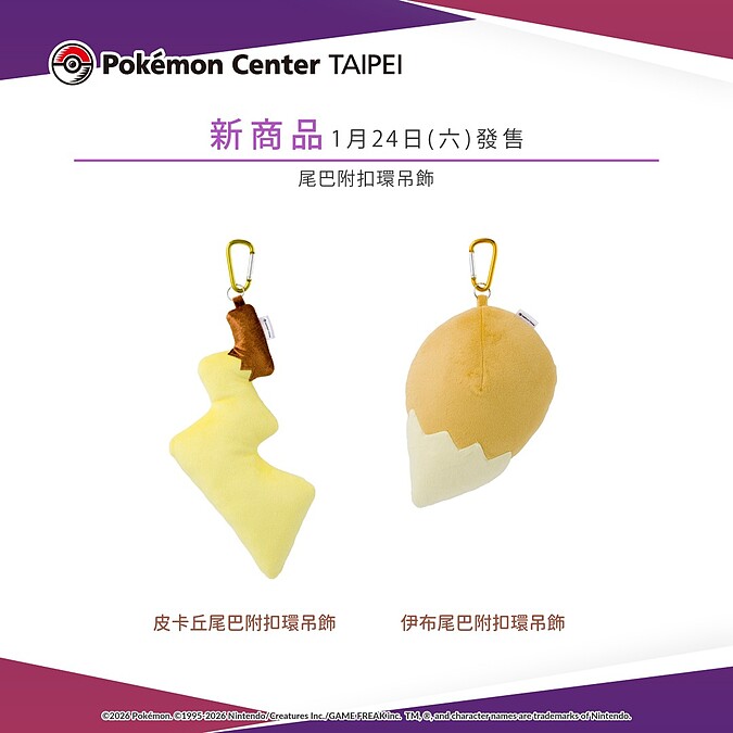 在等待復刻玩偶到貨的同時,台灣寶可夢中心也迎來萌度破表的新品。Pokémon Center TAIPEI官方宣布,將於1/24正式開賣「皮卡丘及伊布的尾巴附扣環吊飾」,單個售價300元。這款吊飾主打高識別度的尾巴造型,不僅是包包上的穿搭亮點,更象徵著與寶可夢並肩作行的夥伴感。