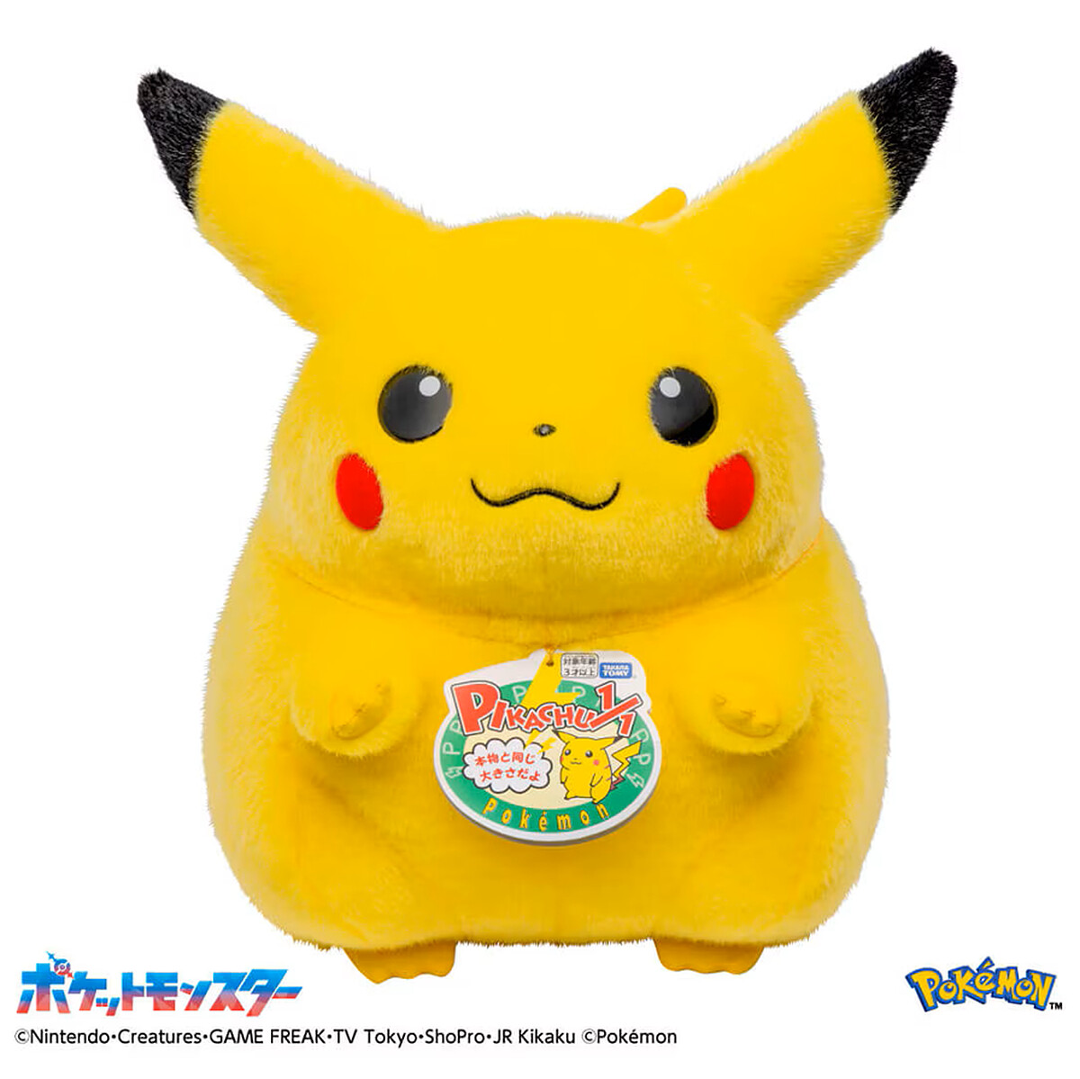 本次推出的「寶可夢30週年紀念 歡迎回來!皮卡丘1/1等身玩偶」,是向1997年推出、累計出貨約45萬隻的初代等身皮卡丘致敬。外型完全還原1996年《寶可夢 紅/綠》版發行初期中臉圓、身體厚實的比例,而非近年動畫中較為修長的形象,就連商品吊牌也刻意採用復古設計。