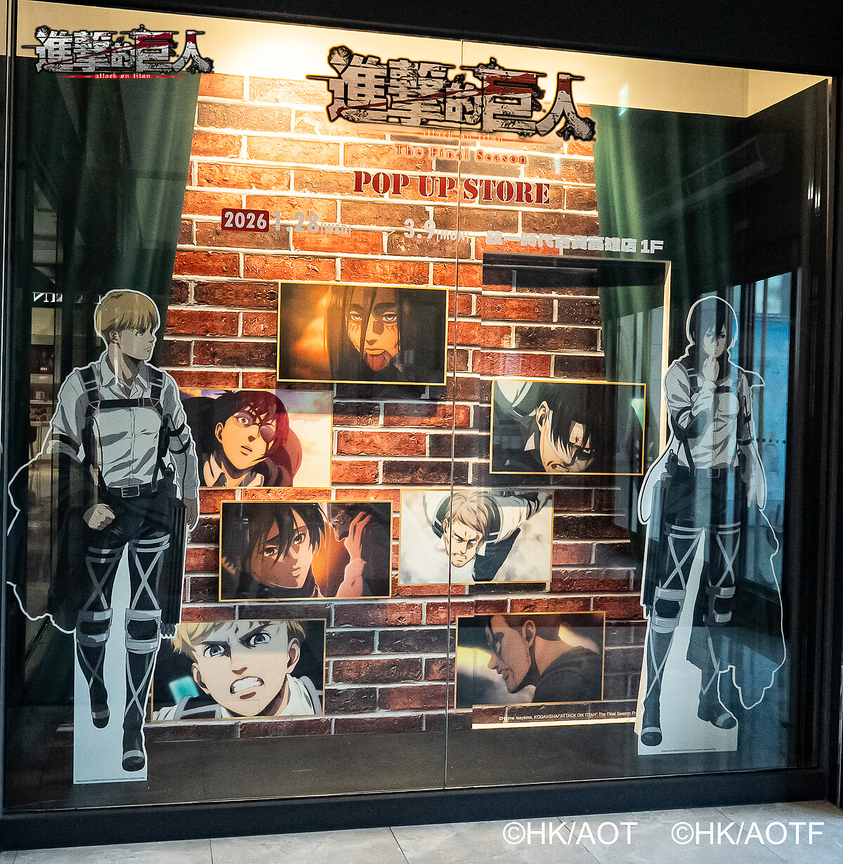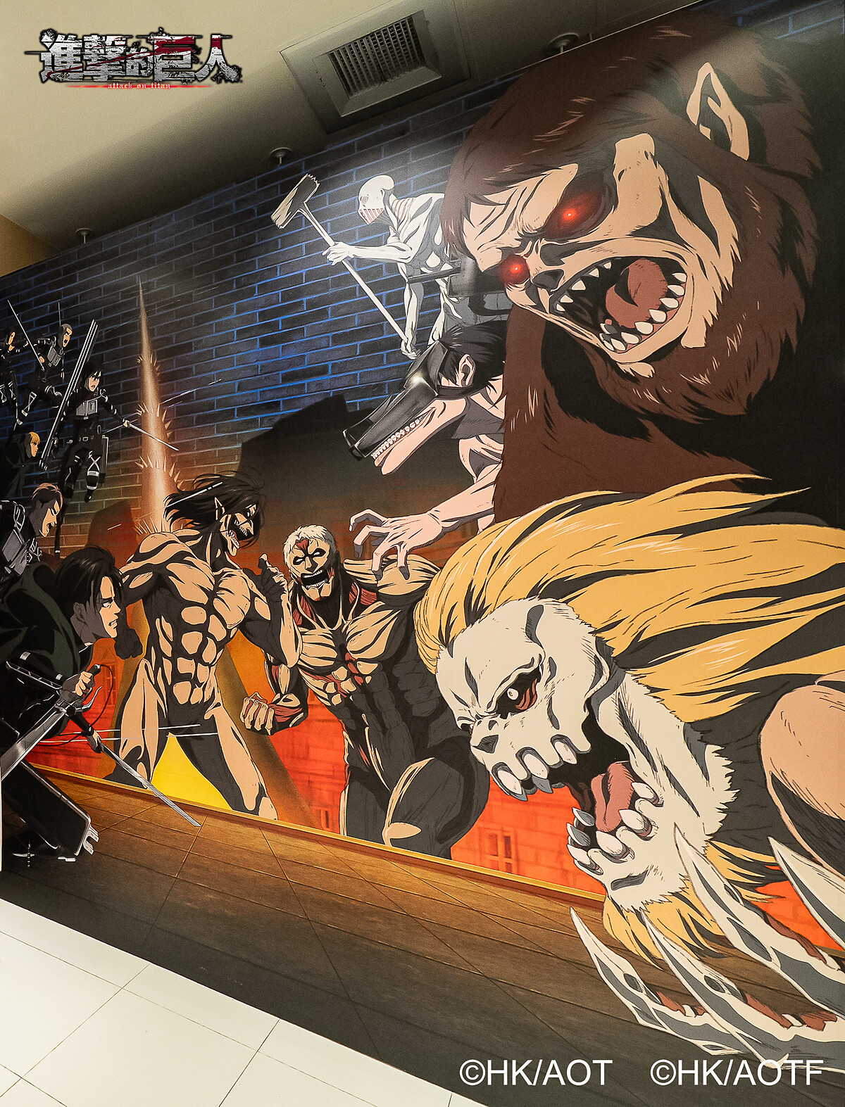 牆面密布動畫中的重要轉折,包括艾連變身時劃破天際的閃電,以及全員整齊劃一「獻出心臟吧!」的壯烈致敬,宛如一部視覺編年史,讓人不自覺陷入回憶漩渦。