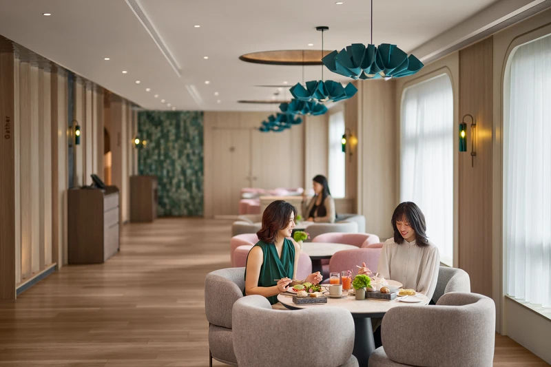 「放慢」也是品牌服務哲學的起點。當越來越多飯店導入AI、無人化管理時,他反而選擇讓「時間」成為服務的一部分:「慢,不代表效率差,而是讓人能感受到被看見。」他舉例,有時只是 Check-in 時多停半分鐘的對話,就能察覺客人的需求,「現在什麼都可以被機器取代,唯有人跟人的感受不能。那個『被理解』的瞬間,是AI無法取代的。」這份「以人為本」的思考,也延伸到飲食與修復體驗上。五樓「Bliss & Bone」餐廳以「Plant-forward」為理念,讓蔬菜成為主角、肉類退居配角。不僅僅只是選擇,而是放進尊重的理念,除了尊重廚師、供應鏈、甚至土地本身。且,餐桌上沒有非黑即白的界線,素食者與肉食者能自在共食,正如品牌核心「Uketamo」所說:在差異中找到共存的平衡。