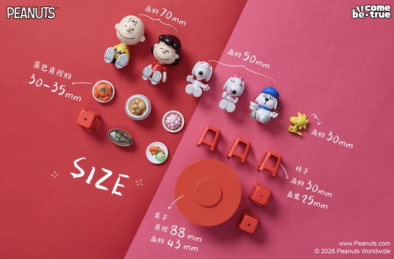 當美國經典漫畫《Peanuts》遇上台灣在地文化,會擦撞出什麼樣的火花?2026年開春,史努比粉絲將迎來最具「台味」的驚喜!全球人氣療癒IP史努比Snoopy攜手好朋友們:查理布朗、歐拉夫、貝兒與露西等人,化身全新微型系列《Snoopy & Friends 台灣辦桌》公仔。他們全坐上辦桌紅椅,更把炸湯圓、紅蟳米糕、石斑魚與佛跳牆等手路菜神還原,讓粉絲能把這份熱鬧的團圓氣氛永久收藏。