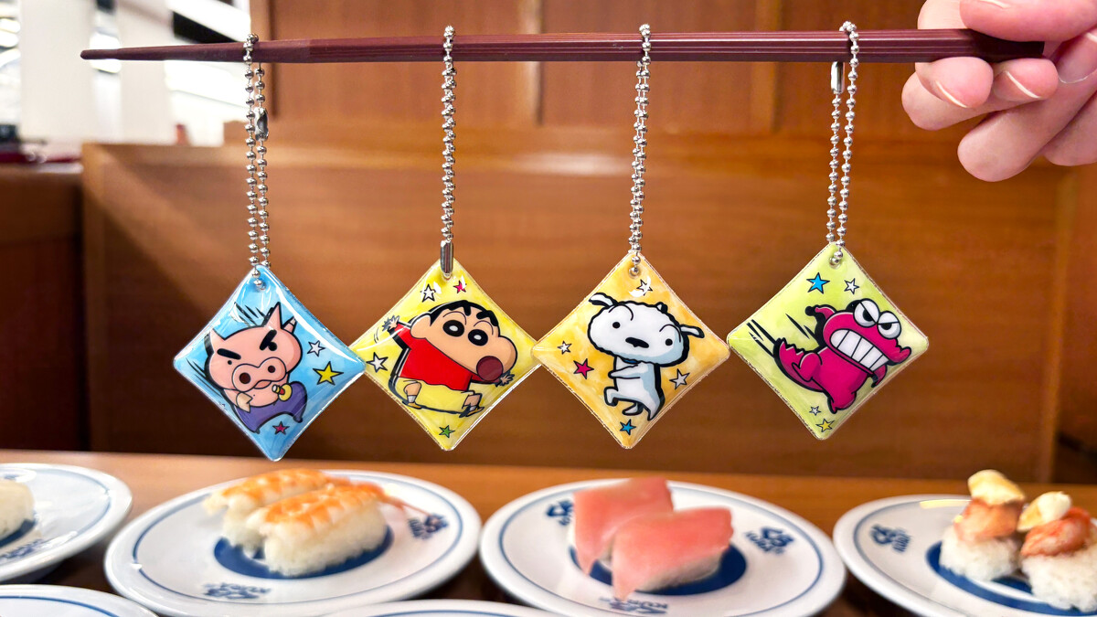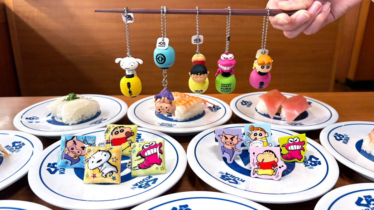 此系列將藏壽司招牌的日式KURA燈籠融入設計,每款角色以不同姿態與燈籠結合,例如小新以經典的「露屁屁」造型登場,而妹妹小葵則是首度加入公仔吊飾陣容,呆萌地站在粉色燈籠上,萌度破表。