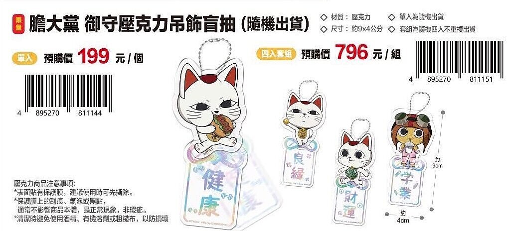 4. 御守壓克力吊飾盲抽(單入199元/四入套組796元)