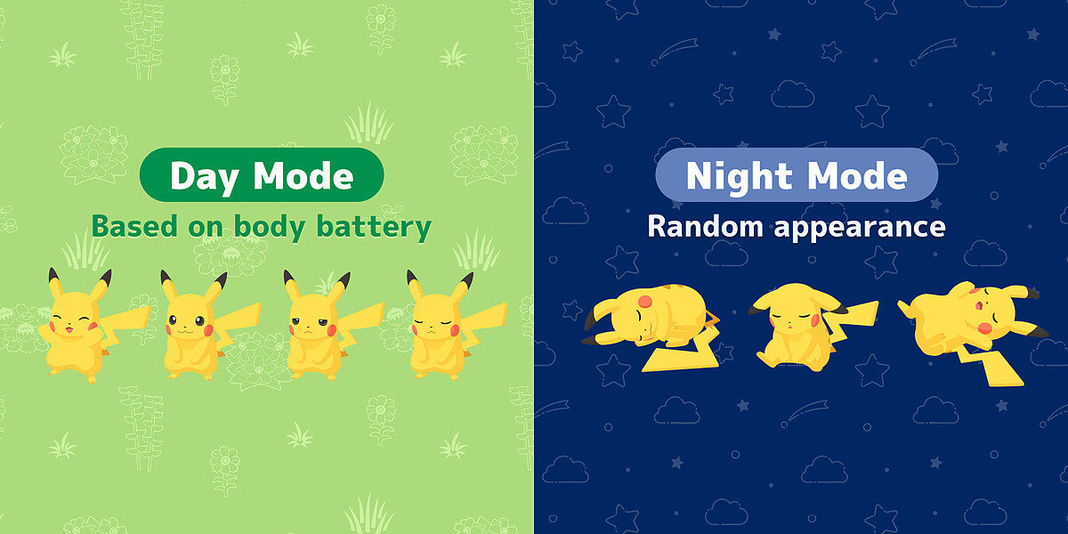 進入夜晚模式後,錶面會隨機出現三種不同的睡姿,延續了《Pokémon Sleep》特有的觀察樂趣。這項設計賦予單純的睡覺更多情緒價值。從白天的奮鬥到夜晚的入睡,整個過程都有角色相伴,讓規律作息不再只是手機裡的死板提醒,而是一段有節奏、有溫度的生活累積。